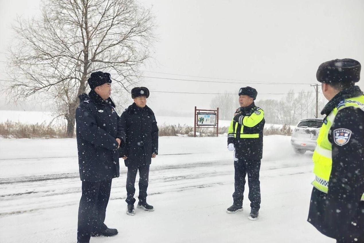 五大連池市公安局領導深入一線督導強降雪天氣道路交通安全管理工作