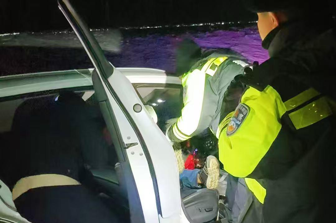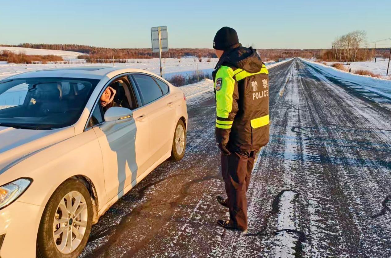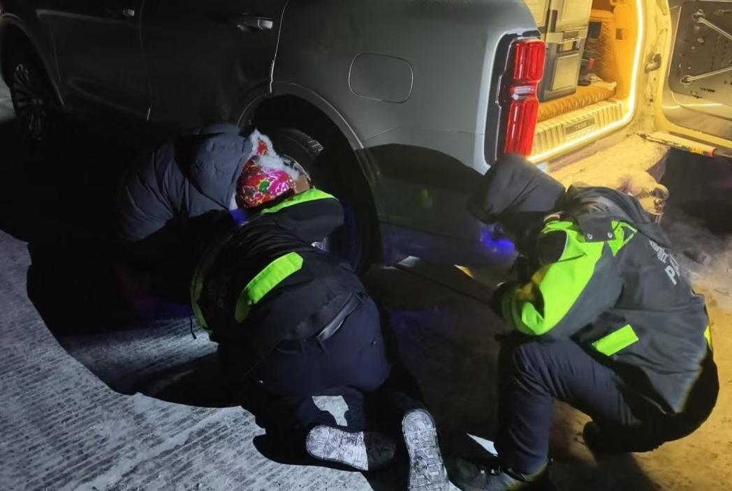 寒夜車輪爆胎 呼瑪交警“警”急救援 暖心服務顯擔當