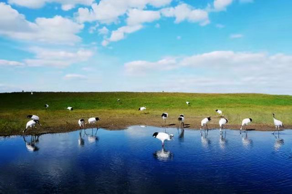 丹頂鶴之所以可以在齊齊哈爾的街上“溜達”,那也是有原因的,好生態(tài)為“溜達鶴”創(chuàng)造了優(yōu)勢條件。齊齊哈爾扎龍國家級自然保護區(qū)是我國以鶴類等大型水禽為主的珍稀水禽分布區(qū),是世界上最大的丹頂鶴繁殖地。這里葦草肥美、魚蝦豐盛,是鳥類繁衍的天堂,也是丹頂鶴的故鄉(xiāng)。每年有6種珍稀鶴類在此繁殖停歇,素有“鶴鄉(xiāng)”之稱。