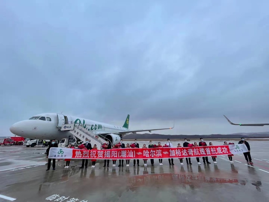 3月29日17時15分,在陣陣的引擎轟鳴聲中,由廣東揭陽(潮汕)飛往加格達奇的首個航班準時平穩(wěn)地降落在加格達奇嘎仙機場,標志著加格達奇—哈爾濱—揭陽(潮汕)航線首航成功。30日,春秋航空還將首航加格達奇—哈爾濱—上海航線。