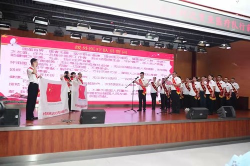 全體隊員面向隊旗進行莊嚴宣誓,鄭重承諾將牢記援外醫(yī)療光榮使命,不辜負祖國人民重托,發(fā)揚“不畏艱苦、甘于奉獻、救死扶傷、大愛無疆”的中國醫(yī)療隊精神,為增進中國和受援國人民友誼、促進世界和平做出積極貢獻。