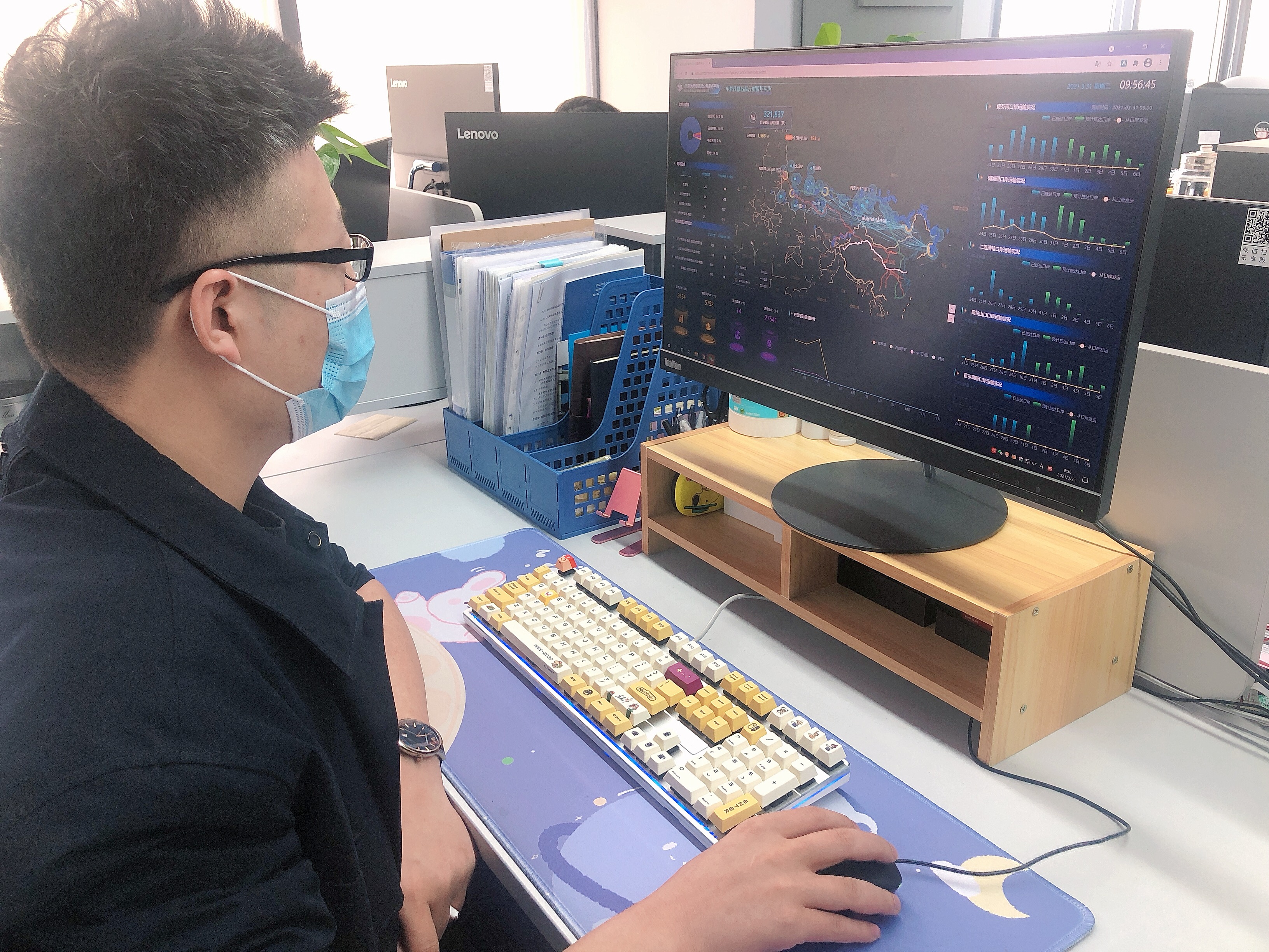 俄運(yùn)通大數(shù)據(jù)事業(yè)部工作人員線上實時監(jiān)控貨物位置和軌跡信息