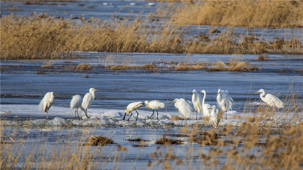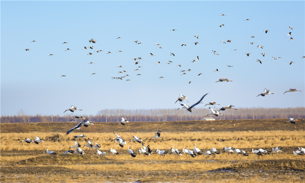 寶清縣七星河國家級自然保護(hù)區(qū)和東升自然保護(hù)區(qū)日前迎來了首批候鳥回歸。數(shù)萬只雁類及白琵鷺、丹頂鶴、東方白鸛等候鳥飛臨保護(hù)區(qū)停歇休養(yǎng),它們時而起舞歡歌,時而低頭覓食,為保護(hù)區(qū)增添了無限生機(jī)與活力。