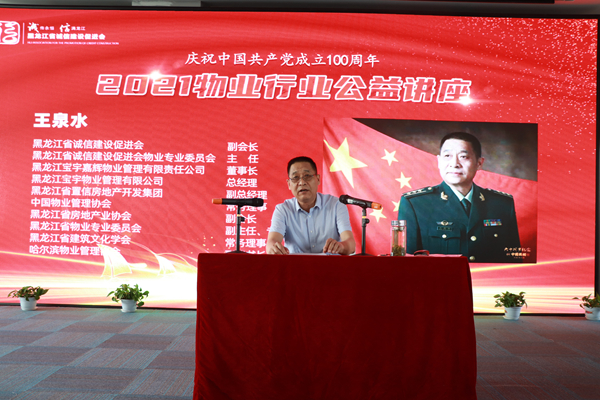 黑龍江省誠信建設促進會物業(yè)專業(yè)委員會主任、黑龍江寶宇物業(yè)公司總經(jīng)理 王泉水以《后疫情時代如何更好的開展物業(yè)服務》為題做了專題講座。王泉水曾帶領全體員工連續(xù)創(chuàng)建國家示范項目4個、省級“十佳”項目5個,其他管理項目全部創(chuàng)建為省級項目,先后在全省講授物業(yè)課18次、聽眾3000余人,經(jīng)常接到物業(yè)人的電話和微信對相關事務的解答、解釋并給予指導和幫助。