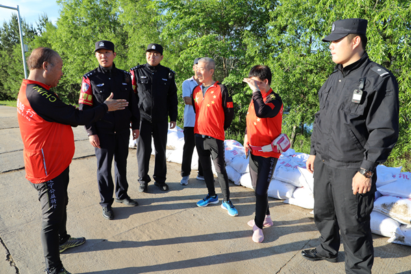 漠河市副市長(zhǎng)、公安局黨委書記、局長(zhǎng)姜明君,局黨委委員李永鳴、張華武分別帶領(lǐng)各突擊小分隊(duì)與北極鎮(zhèn)政府緊密對(duì)接,劃分責(zé)任片區(qū),定人定崗巡回查看黑龍江江堤水位、道路排水設(shè)施和人防工程等情況。突擊隊(duì)中,科級(jí)以上干部、部門負(fù)責(zé)同志近三分之一,黨員民警近五分之二,主動(dòng)請(qǐng)纓沖在防洪防汛第一線,充分發(fā)揮模范帶頭作用。