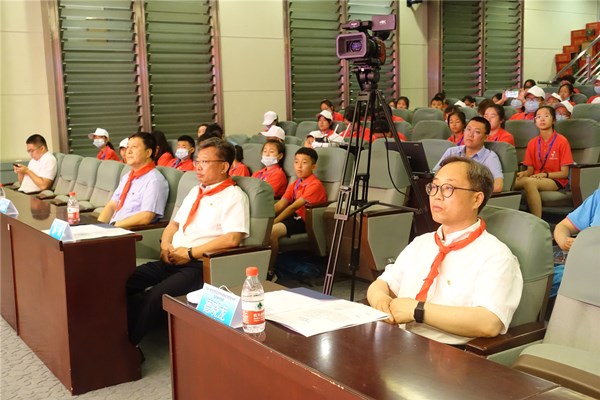 開營(yíng)儀式由黑龍江省科技館副館長(zhǎng)許黎輝主持。黑龍江省科技館黨委書記德曉龍致辭并宣布開營(yíng)。吉林省科技館館長(zhǎng)郝鶴宣讀夏令營(yíng)營(yíng)規(guī)并為夏令營(yíng)授營(yíng)旗。來自黑龍江省、吉林省的征文一、二等獎(jiǎng)獲獎(jiǎng)學(xué)生及其指導(dǎo)教師、科普志愿者共130余人參加了開營(yíng)儀式。來自吉林省集安市的王彤老師代表兩省指導(dǎo)教師發(fā)言,來自黑龍江省綏濱縣第二中學(xué)的陳曉彤同學(xué)代表兩省學(xué)生在開營(yíng)儀式上發(fā)言。