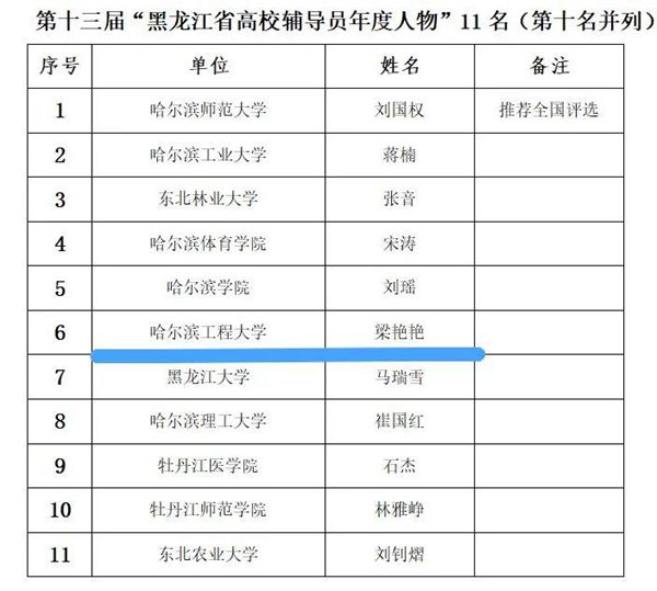 此次活動(dòng)共評選出“第十三屆黑龍江省高校輔導(dǎo)員年度人物”11名,“2021年龍江最美高校輔導(dǎo)員”10名。哈工程輔導(dǎo)員梁艷艷、李蕊憑借高水平的專業(yè)能力、優(yōu)異的工作業(yè)績以及認(rèn)真負(fù)責(zé)的工作精神,在眾多評選者中脫穎而出。