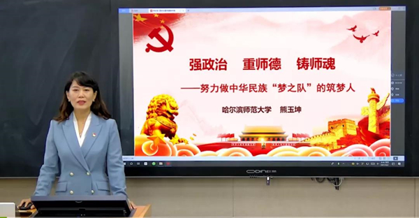 據(jù)了解,本次活動(dòng)是黑龍江省教育廳慶祝第37個(gè)教師節(jié)的系列活動(dòng)之一,由哈爾濱師范大學(xué)協(xié)辦、全國(guó)中小學(xué)繼續(xù)教育網(wǎng)技術(shù)支持舉辦?;顒?dòng)以“賡續(xù)百年初心,擔(dān)當(dāng)育人使命”為主題,由哈爾濱師范大學(xué)馬克思主義學(xué)院熊玉坤副教授講授題為《強(qiáng)政治、重師德、鑄師魂——努力做中華民族“夢(mèng)之隊(duì)”的筑夢(mèng)人》的思政課。課程圍繞提升教師思想政治素質(zhì)和師德水平、更好擔(dān)負(fù)起立德樹(shù)人根本任務(wù)展開(kāi),分為新時(shí)代加強(qiáng)和改進(jìn)師德師風(fēng)建設(shè)的政治要求、新時(shí)代師德師風(fēng)建設(shè)的豐富內(nèi)涵、新時(shí)代強(qiáng)化師德師風(fēng)建設(shè)的對(duì)策思考三個(gè)部分,系統(tǒng)回答了新時(shí)代中小學(xué)教師思想政治和師德師風(fēng)建設(shè)為什么、是什么、怎么做的問(wèn)題。