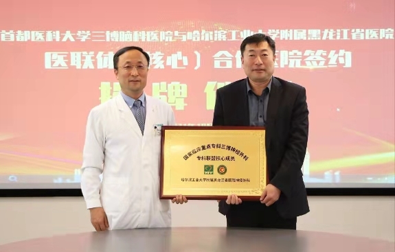劉宏石書記對此次醫(yī)聯(lián)體合作寄予了厚望,他表示,首都醫(yī)科大學(xué)三博腦科醫(yī)院是一所久負(fù)盛名的三級神經(jīng)專科醫(yī)院,是神經(jīng)系統(tǒng)疾病臨床、科研和教學(xué)方面的翹楚,是非公醫(yī)療的典范。借助三博腦科醫(yī)院??萍夹g(shù)優(yōu)勢,圍繞學(xué)科建設(shè)、人才培養(yǎng)、疑難危重癥救治等開展廣泛合作,建立優(yōu)勢互補(bǔ),資源共享的運(yùn)營機(jī)制,不僅有利于優(yōu)質(zhì)醫(yī)療技術(shù)下沉,促進(jìn)學(xué)科發(fā)展,可以讓更多黑龍江省神經(jīng)系統(tǒng)患者可在家門口就能享受到北京一流專家的診斷和治療,減輕了患者的就醫(yī)負(fù)擔(dān),是造福地方百姓的好事。