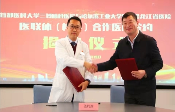 黑龍江經(jīng)濟(jì)網(wǎng)訊(林穎 董宇翔 梁新立) 10月19日,黑龍江省醫(yī)院與首都醫(yī)科大學(xué)三博腦科醫(yī)院結(jié)成醫(yī)聯(lián)體簽約揭牌儀式在北京舉行。今后雙方將在遠(yuǎn)程會診、技術(shù)指導(dǎo)與支持、人才培養(yǎng)和資源共享等多方面開展緊密合作,攜手共進(jìn),優(yōu)勢互補(bǔ),共同提高在神經(jīng)科學(xué)領(lǐng)域臨床、科研及教學(xué)水平,提升醫(yī)療服務(wù)能力,切實為黑龍江省及周邊地區(qū)百姓提供優(yōu)質(zhì)的醫(yī)療衛(wèi)生服務(wù)。