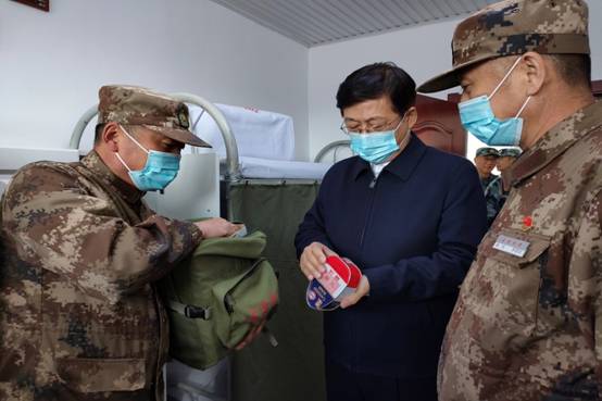 集團公司黨委書記于輝(左二)深入基層關(guān)心關(guān)愛職工生活(李雪慧/攝)