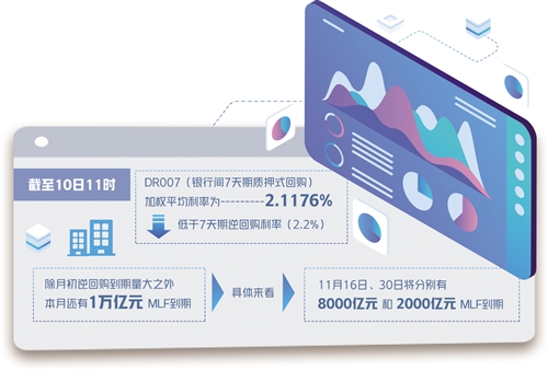 市場(chǎng)資金利率走勢(shì)整體平穩(wěn),恰恰反映出市場(chǎng)對(duì)流動(dòng)性保持合理充裕已有較充分預(yù)期。此前,由于11月公開市場(chǎng)操作工具及中期借貸便利(MLF)到期量大,疊加繳稅、專項(xiàng)債發(fā)行量較大、財(cái)政支出等因素影響,有部分市場(chǎng)人士擔(dān)心,國(guó)內(nèi)資金面將受到短期擾動(dòng),資金面或?qū)②吘o。