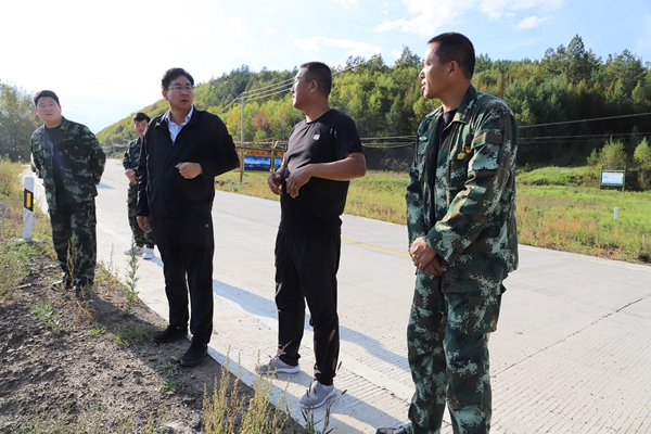 阿木爾林業(yè)局黨委副書記、局長韓鳳泉(右三)深入到龍河林場,檢查指導(dǎo)旅游產(chǎn)業(yè)工作(王力 攝)
