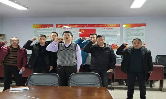 在中國共產(chǎn)黨入黨誓詞展示墻前,黨員干部們面向黨旗,高舉右手,重溫了入黨誓詞,我志愿加入中國共產(chǎn)黨,擁護黨的綱領......隨時準備為黨和人民犧牲一切,永不叛黨?;貞浫朦h過程加固不忘初心、牢記使命,永葆共產(chǎn)黨員政治本色的堅定政治信念。