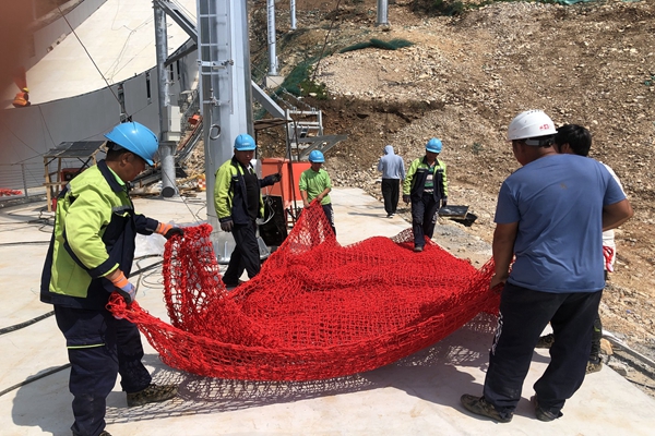 安裝完成的延慶賽區(qū)技術(shù)道路防護(hù)網(wǎng)。