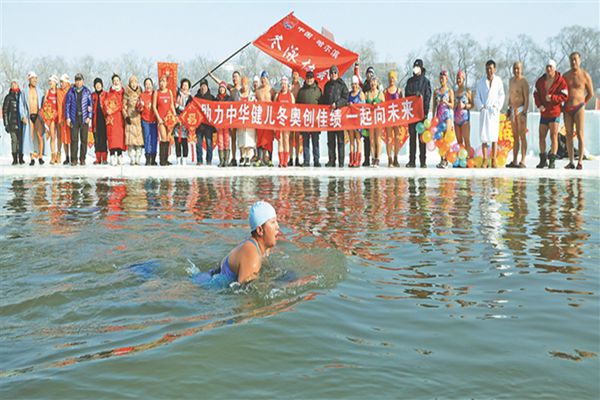 2月1日,正月初一。哈爾濱市冬泳協(xié)會的幾十位隊員,在會長張友慶的帶領(lǐng)下,以冬泳的方式,迎接壬寅虎年的到來。松花江上的冬泳場,披紅掛彩,貼上了福字。隊員們輪番從高臺、低臺上躍身而下,在江水中暢游。張友慶表示,大年初一,哈爾濱冬泳人響應(yīng)全民健身的號召,以冬泳的方式,積極參與到冰雪運動中來,以健康的身體、飽滿的精神,迎接北京冬奧會。