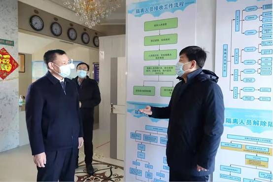 在縣內(nèi)備用隔離賓館,孫亮通過走流程的形式詳細了解了隔離賓館“三區(qū)兩通道”的設(shè)置情況以及各隔離賓館的基本情況,聽取了在隔離期間對隔離人員的管理情況,向在隔離期間堅守崗位的工作人員表示感謝,同時叮囑相關(guān)負責人,要嚴格執(zhí)行防疫措施和要求,做好隔離人員的心理疏導(dǎo),堅決封堵隔離管理的漏洞。