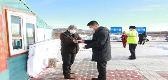 路邊上臨時(shí)搭建的帳篷里很溫暖,但值守的工作人員卻顧不上取暖。負(fù)責(zé)疫情防控的工作人員說:“嚴(yán)把路口入城關(guān)是做好防疫工作的前哨,我們本著不漏一車一人的原則,守好疫情防控第一道防線。同時(shí),作為一名黨員,這也是我們應(yīng)盡的職責(zé),一名黨員就是一面旗幟,這一點(diǎn)寒風(fēng)比起群眾的生命安全算不了什么。”