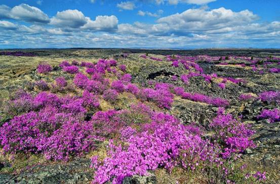 另一獨(dú)具北國風(fēng)光特色的是“興安杜鵑”,又稱“映山紅”“達(dá)子香”“達(dá)達(dá)香”,粉紅色的花朵與純白色的雪山是黑龍江高山叢林之間的春季奇景。其中,在牡丹江鏡泊湖景區(qū)及周邊熔巖臺(tái)地盛開的杜鵑花,林在石上、石在花中、花在石上,石海、花海、林海形成罕見的自然奇觀。此外,齊齊哈爾龍江縣的杜鵑山景區(qū)、以興安杜鵑為市花的伊春小興安嶺、雙鴨山的大頂子山、黑河的錦河大峽谷、大興安嶺的百泉谷生態(tài)旅游風(fēng)景區(qū)等地,都可以探尋到興安杜鵑的芳蹤。