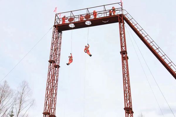 訓練過程中,中隊長馬振濤對高空索滑需要注意的事項和方法方式進行了詳細講解,并將在訓練過程中容易出現(xiàn)的錯誤動作,結合實際訓練做了現(xiàn)場演示。指導參訓人員克服恐懼心理,嚴格按照理論輔導、教學大綱、索滑降訓練的步驟進行科學訓練。堅持由簡到繁、由易到難、循序漸進的原則,對安全背帶穿戴、索控器具裝卸繩、不同高度滑降、遇到突發(fā)問題快速處理等內容進行了系統(tǒng)訓練。一次次繩結、一次次索滑降、一次次健步如飛……千錘百煉中隊員們逐步熟練了滑降的操作流程,克服了恐懼心理,取得了明顯成效。