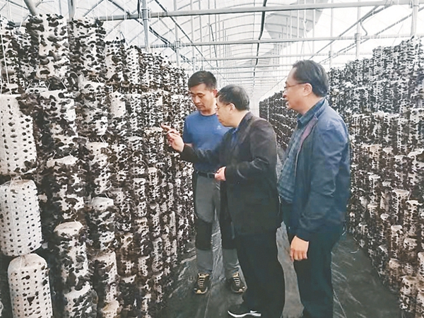 科研人員對(duì)黑木耳規(guī)模化生產(chǎn)進(jìn)行技術(shù)指導(dǎo)。