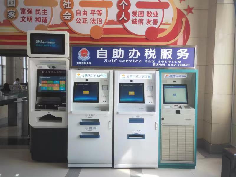 漠河市稅務(wù)局在政務(wù)服務(wù)大廳配置了3臺(tái)自助辦稅終端,分別是發(fā)票代開自助終端、發(fā)票申領(lǐng)自助終端和定額發(fā)票申領(lǐng)終端。