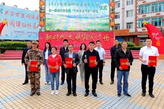 出席活動(dòng)的林業(yè)局領(lǐng)導(dǎo)為塔河林業(yè)局“十大鄉(xiāng)土專(zhuān)家”頒發(fā)了授任證書(shū)和獎(jiǎng)杯。