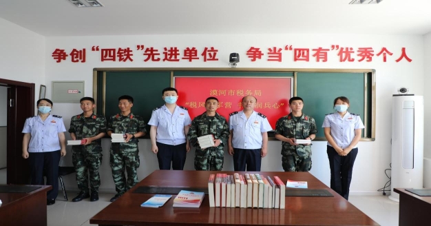 稅務干部向部隊官兵贈送書籍。
