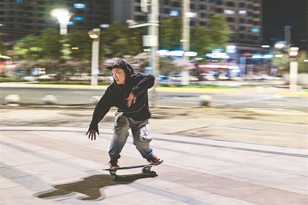 他們今天的活動(dòng)內(nèi)容叫“刷街”:在太陽(yáng)島集合,人齊后儀式性地手拉手圍成一圈滑上一會(huì),然后出發(fā),滑到“網(wǎng)紅橋”濱洲鐵路橋,從橋上過(guò)江,再沿江邊一直滑到九站碼頭附近的小廣場(chǎng),再手拉手滑圈,22時(shí)左右解散。
