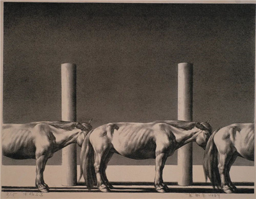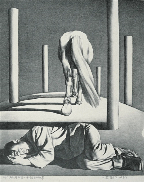 躺著的男人與遠(yuǎn)去的白馬 62×50.5cm 石版畫 1989年