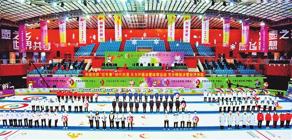 圖為2022中國(guó)冰壺聯(lián)賽(伊春站)開(kāi)幕式現(xiàn)場(chǎng)。(胡錫韋/攝)