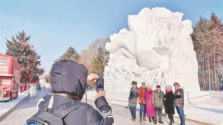 本報訊(記者 蔣國紅)“這個魚雕得太好看了,快給我拍張照!”在第35屆中國·哈爾濱太陽島國際雪雕藝術(shù)博覽會現(xiàn)場,游人或乘坐電瓶車,或徒步欣賞著美麗的雪塑盛宴。