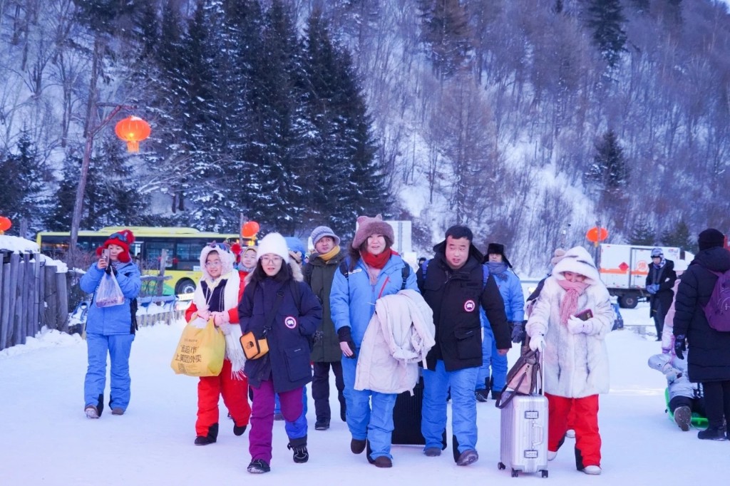 其中,雪鄉(xiāng)單日入園游客最高近1.5萬(wàn)人次,7天入園人數(shù)逾7萬(wàn)人次,走在雪韻大街上,烤地瓜、烤土豆、鐵鍋燉的香氣撲鼻而來(lái),花車巡游、扭大秧歌、焰火晚會(huì)等各類互動(dòng)式體驗(yàn)活動(dòng)讓景區(qū)熱鬧非凡,吸引四面八方的游客前來(lái)。