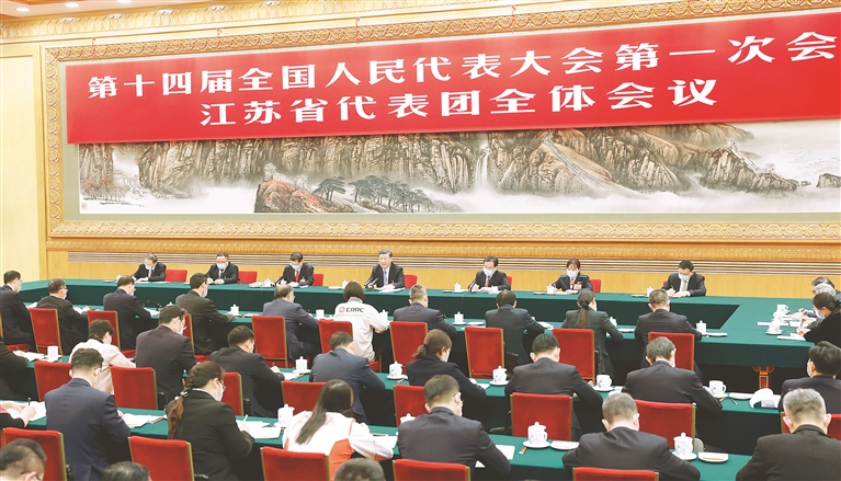 3月5日,中共中央總書記、國家主席、中央軍委主席習(xí)近平參加他所在的十四屆全國人大一次會議江蘇代表團(tuán)審議。