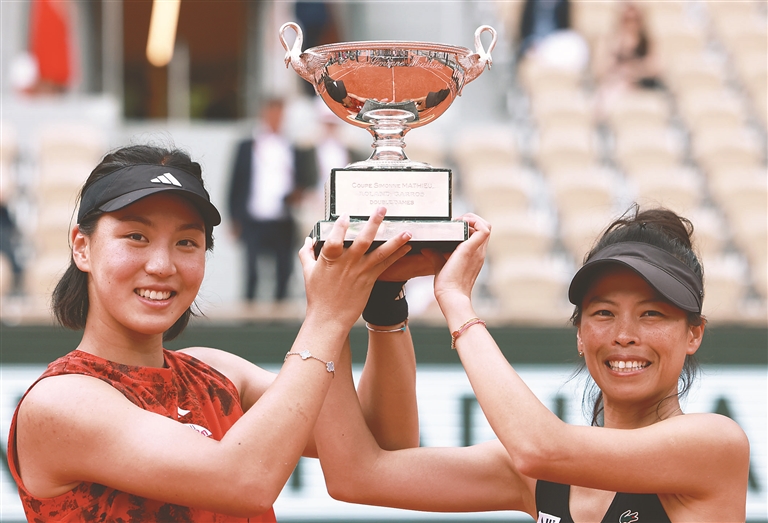 當日,在2023法國網(wǎng)球公開賽女子雙打決賽中,王欣瑜(中國)/謝淑薇(中國臺北)以2比1戰(zhàn)勝費爾南德斯(加拿大)/湯森(美國),奪得冠軍。