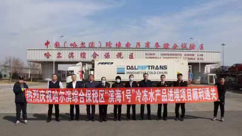 這批貨物由哈俄班列公司購買并承運(yùn),在哈爾濱海關(guān)及所屬冰城海關(guān)、市商務(wù)局、綜保區(qū)、香坊區(qū)的大力支持下,成功打通了海參崴——綏芬河——哈爾濱俄羅斯冷凍海產(chǎn)品冷鏈運(yùn)輸通道,解決了俄方啟運(yùn)、邊境查驗(yàn)、綜保區(qū)口岸報關(guān)的一系列問題。這一通道的打通,為白令海峽高品質(zhì)海產(chǎn)品經(jīng)由俄羅斯進(jìn)入國內(nèi)提供了新的陸路物流解決方案,將對海運(yùn)形成部分替代。