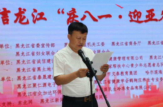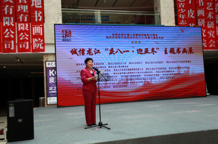 省直機(jī)關(guān)工委行業(yè)協(xié)會(huì)商會(huì)黨建工作部部長(zhǎng)、全省性社會(huì)組織黨委專(zhuān)職副書(shū)記秦曉明致辭。他表示,相信通過(guò)這次活動(dòng)的舉辦,將進(jìn)一步激勵(lì)軍民同心,增強(qiáng)情感認(rèn)同,深化同呼吸、共命運(yùn)、心連心的軍民魚(yú)水情,營(yíng)造擁軍優(yōu)屬、擁政愛(ài)民的濃厚社會(huì)氛圍。同時(shí),以亞冬會(huì)為媒,以書(shū)畫(huà)展為平臺(tái),充分展示文明尚禮、熱情自信的冰城風(fēng)貌,領(lǐng)略龍江深厚的冰雪運(yùn)動(dòng)底蘊(yùn)。