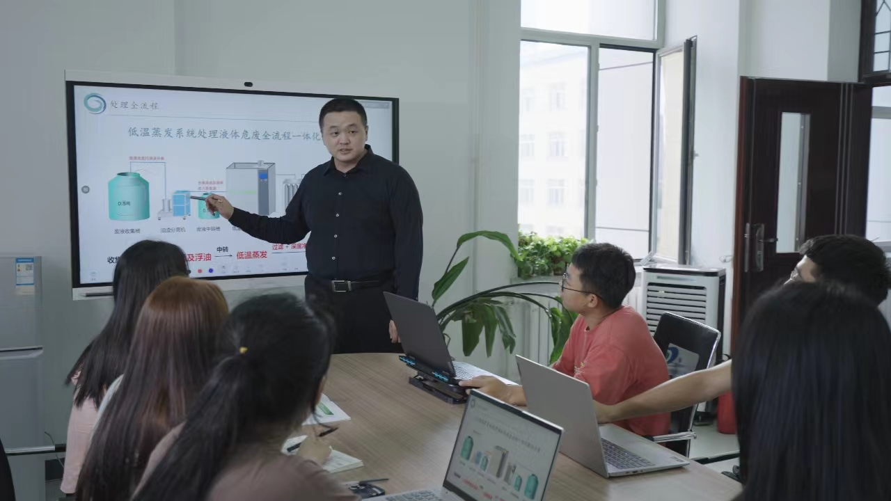 黑龍江職業(yè)學院《龍之禹30℃低溫蒸發(fā)——企業(yè)液體危險廢棄物源頭減量化的省錢專家》項目負責人郭振航帶領(lǐng)項目組成員研討
