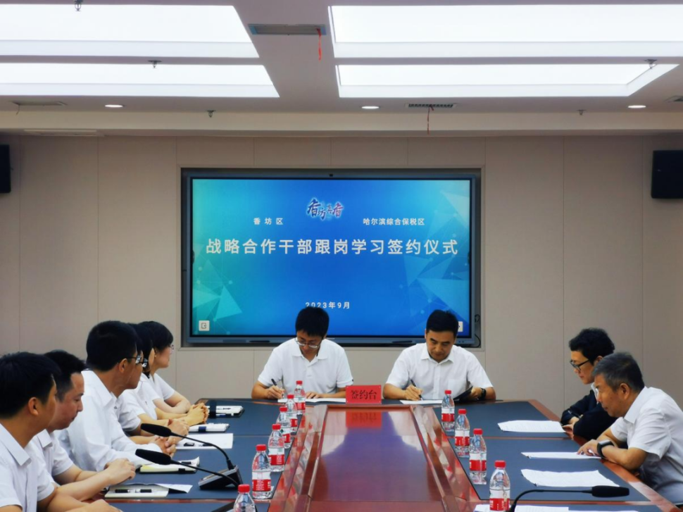 黑龍江經(jīng)濟(jì)網(wǎng)訊(記者商祺)9月8日上午,哈爾濱綜合保稅區(qū)管委會與香坊區(qū)委組織部舉行戰(zhàn)略合作協(xié)議簽約儀式暨干部跟崗學(xué)習(xí)對接會。哈爾濱綜保區(qū)管委會常務(wù)副主任、黨工委副書記邸凱與香坊區(qū)委組織部部長楊鐵巖出席會議并代表雙方簽約。相關(guān)單位主要領(lǐng)導(dǎo)及10余名跟崗學(xué)習(xí)干部參加會議。