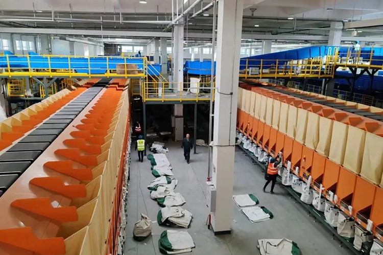 航空郵件處理中心進(jìn)口場(chǎng)地(一階段)采用“矩陣+小件分揀機(jī)”設(shè)備工藝,配置11條粗分線和10條細(xì)分線,配置432格口的三層小件分揀機(jī)1臺(tái),設(shè)置直發(fā)車(chē)位105個(gè)。場(chǎng)地整體處理效率設(shè)計(jì)為10.5萬(wàn)件/小時(shí),日郵件吞吐能力可達(dá)210萬(wàn)件。航空郵件處理中心全面建成后,垛口數(shù)量較原陸運(yùn)處理中心增加2.2倍,日均處理能力可提高2.15倍,單件成本可下降30%。航空郵件處理中心建成運(yùn)營(yíng)后,全省郵政寄遞業(yè)務(wù)運(yùn)營(yíng)能力和郵件全程時(shí)限質(zhì)量將邁上一個(gè)新臺(tái)階,核心競(jìng)爭(zhēng)力將大幅提高,為臨空經(jīng)濟(jì)區(qū)高質(zhì)量發(fā)展增添動(dòng)力。