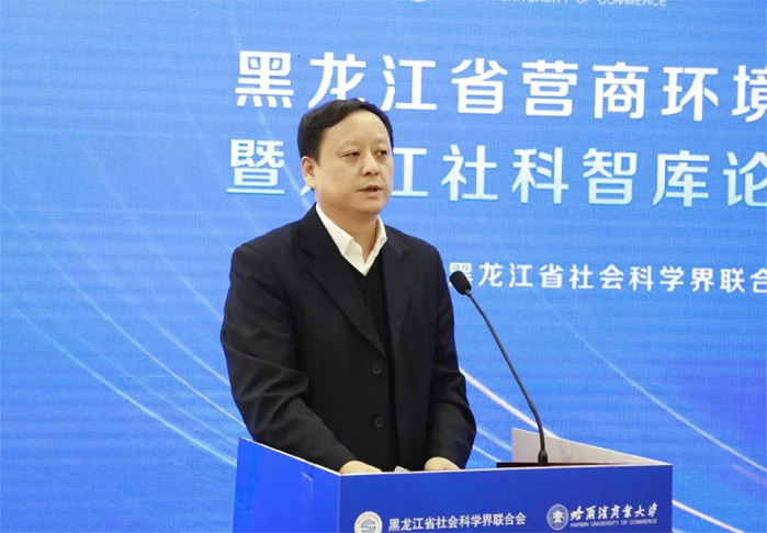 哈爾濱商業(yè)大學黨委書記孫先民致歡迎辭。他介紹了學校70余年辦學治校積累的豐富經(jīng)驗和豐碩成果,指出學校充分發(fā)揮學科專業(yè)研究方向及特色優(yōu)勢,在服務社會信用體系構(gòu)建、助力社會信用環(huán)境和營商環(huán)境優(yōu)化、服務新時代文明實踐、帶動全社會道德素質(zhì)和文明程度提升、服務商業(yè)模式實踐與創(chuàng)新、切實擔負起服務國家戰(zhàn)略、助力龍江發(fā)展的時代使命等方面取得了成果成效。