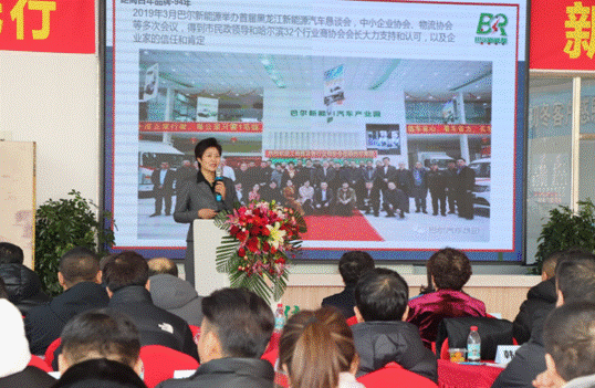 黑龍江巴爾新能源汽車銷售有限公司董事長高臣文、總經(jīng)理徐娟就物聯(lián)網(wǎng)+新能源汽車產(chǎn)業(yè)相關(guān)情況以及發(fā)展新能源汽車產(chǎn)業(yè)規(guī)劃進(jìn)行路演推介,并作民營企業(yè)家理想信念報(bào)告。