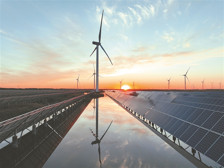 在大慶市水源路附近,光伏電池板與風(fēng)機(jī)交相輝映。圖片由受訪單位提供