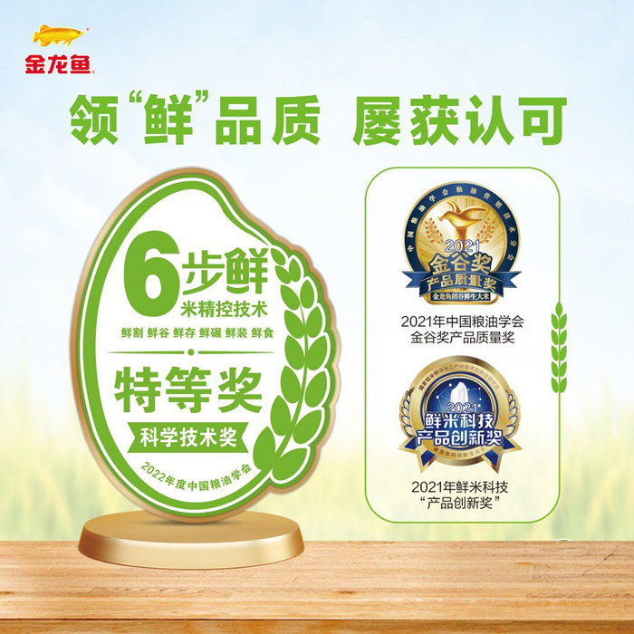 這不是金龍魚6步鮮大米第一次獲得金獎殊榮。6步鮮大米采用的稻谷“6步鮮米精控技術(shù)”創(chuàng)新體系開發(fā)及產(chǎn)業(yè)化,在2022年獲得了中國糧油學(xué)會科學(xué)技術(shù)獎特等獎。這也是中國糧油學(xué)會科學(xué)技術(shù)獎當(dāng)年惟一一個“特等獎”項(xiàng),含金量可見一斑。