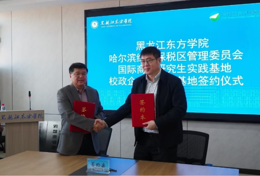 黑龍江經(jīng)濟網(wǎng)訊(記者李凌雪)11月20日,哈爾濱綜合保稅區(qū)與黑龍江東方學院舉行校政企產(chǎn)教研發(fā)展戰(zhàn)略合作協(xié)議簽約授牌儀式。哈爾濱綜合保稅區(qū)副主任張旭與黑龍江東方學院副校長程延江共同為國際商務研究生實踐基地、校企合作教育基地授牌并簽署合作協(xié)議。