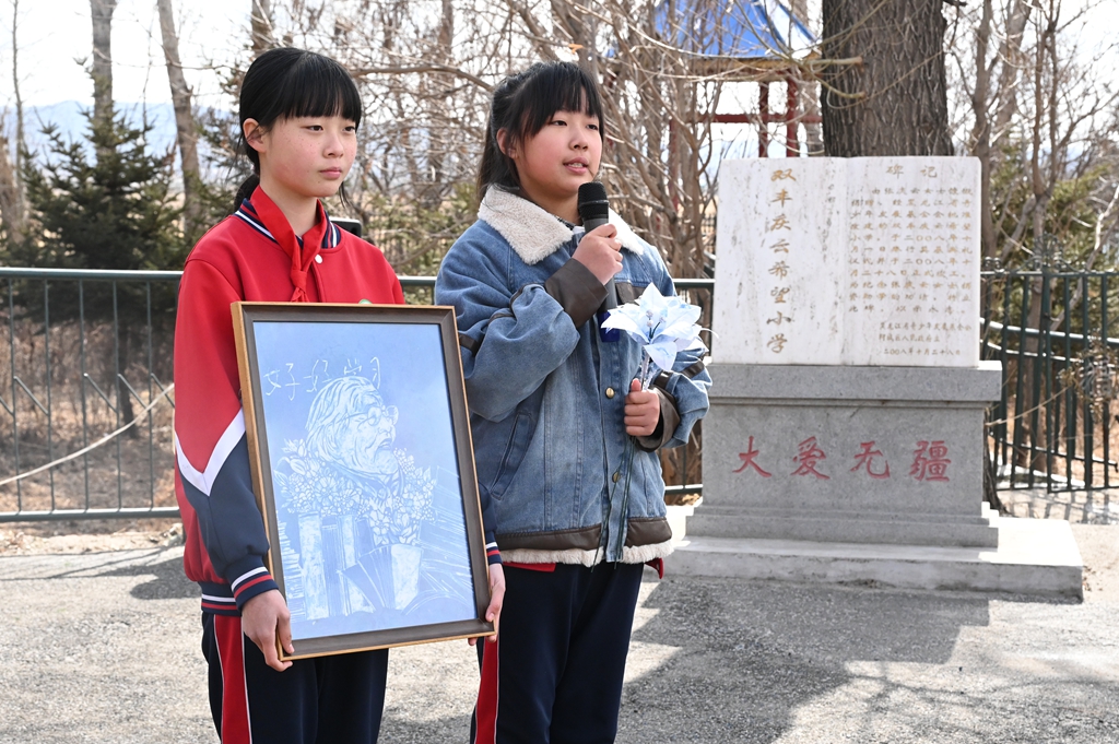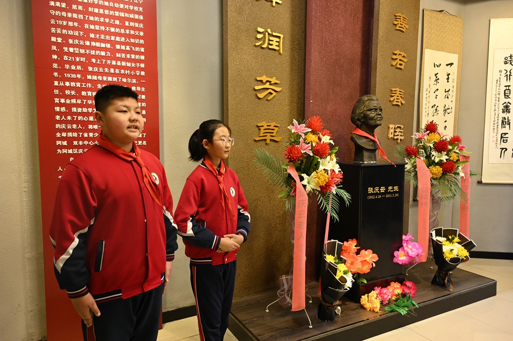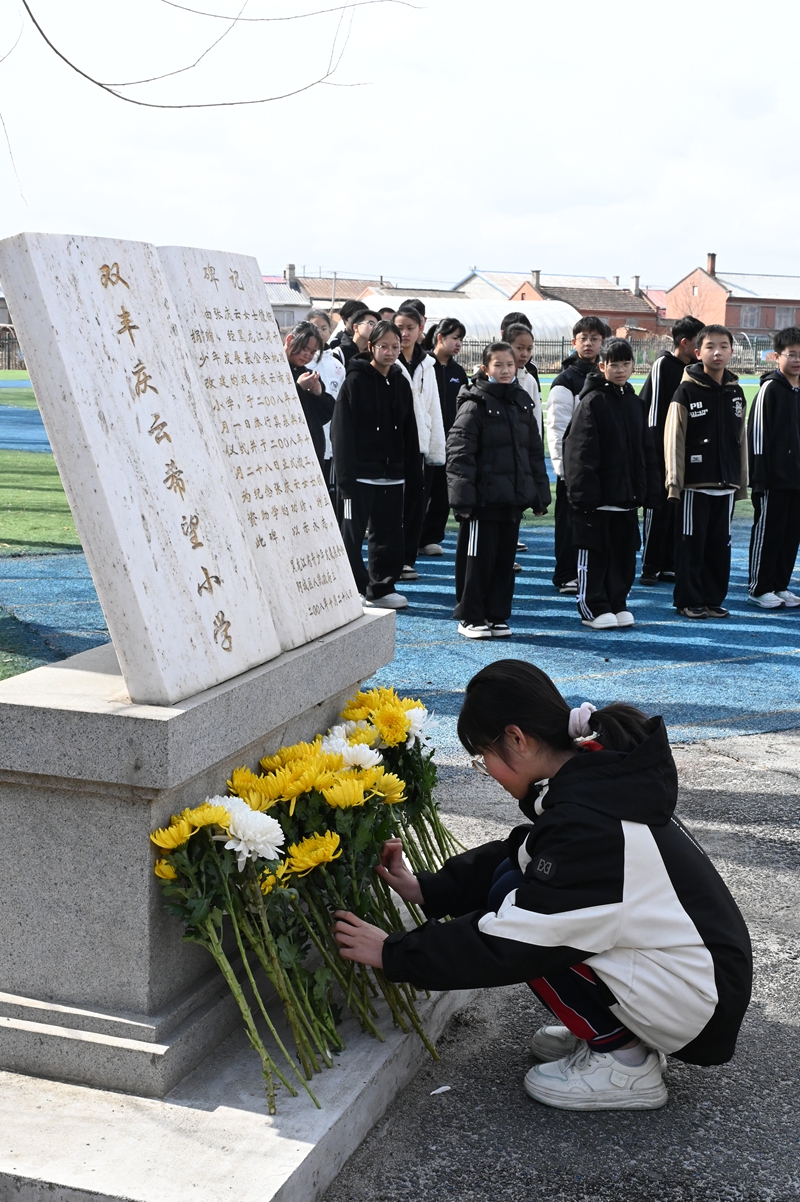 活動中,黨員和少先隊(duì)員代表向老黨員張慶云同志紀(jì)念碑敬獻(xiàn)鮮花,并全體緬懷。團(tuán)省委、省捐助中心、哈爾濱市注冊會計(jì)師行業(yè)黨員代表為學(xué)生們送去了圖書和學(xué)習(xí)用品。