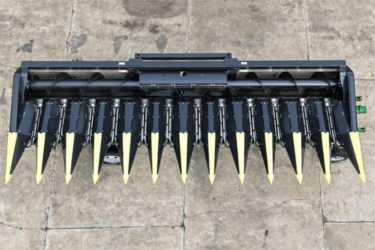 現(xiàn)場會上,最讓人駐足的是現(xiàn)場展示的意大利卓收割臺, 此次引入的卓收割臺,其自動摘穗板每行單元可實(shí)現(xiàn)自動開合且?guī)в袦p震功能,能根據(jù)玉米粗細(xì)靈活調(diào)節(jié)間隙,有效解決了其他品牌割臺無法對每行每株精準(zhǔn)適配的問題;同時(shí),收割臺的拉莖輥長度較其他品牌割臺增加 8 公分,讓割臺更貼合地面,在收獲倒伏玉米時(shí)作業(yè)角度更優(yōu),大幅減少 “跳棒” 現(xiàn)象。此外,卓收割臺的拉莖輥及刀片采用螺栓固定設(shè)計(jì),可隨時(shí)調(diào)整位置或更換部件,避免了其他割臺因拉莖輥及刀片為一體式設(shè)計(jì)、損壞后需整體更換的弊端。