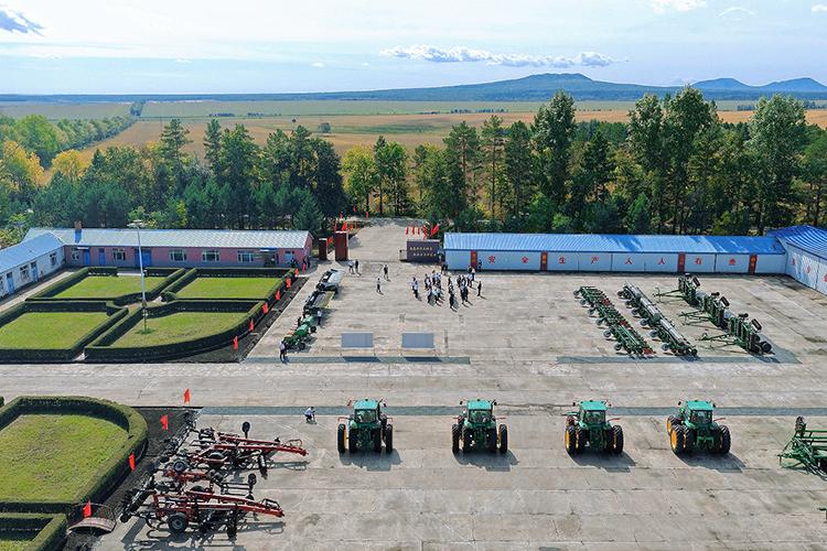 引龍河農(nóng)場構(gòu)建了完善的農(nóng)機(jī)存放與裝備體系,設(shè)有一類農(nóng)機(jī)停放場 7 處、二類停放場 7 處、臨時(shí)停放場 5 處,總面積 10.8 萬平方米,可充分滿足農(nóng)機(jī)存放需求。全場農(nóng)機(jī)總動力達(dá) 4.18 萬千瓦,155 臺動力機(jī)車覆蓋“耕、種、管、收”全環(huán)節(jié),485 臺(套)農(nóng)機(jī)具嚴(yán)格落實(shí)“五凈、四不漏、六封閉、一完好”管護(hù)標(biāo)準(zhǔn)。