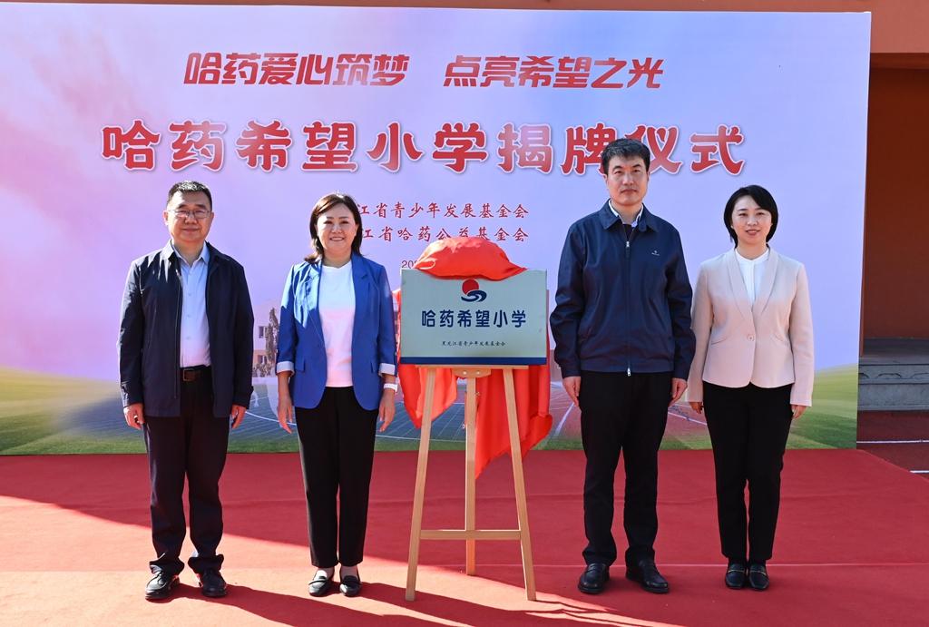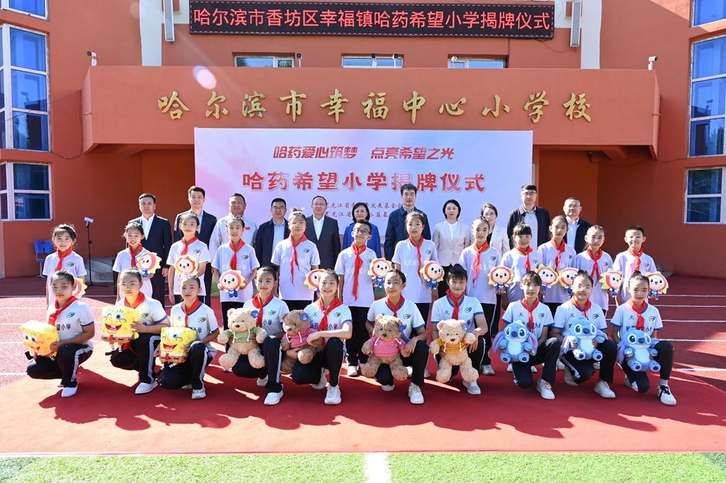隨后,領(lǐng)導(dǎo)嘉賓為哈爾濱市香坊區(qū)幸福鎮(zhèn)哈藥希望小學(xué)揭牌,標(biāo)志著這所學(xué)校將以嶄新面貌,承載更多夢想與希望,開啟新的篇章。