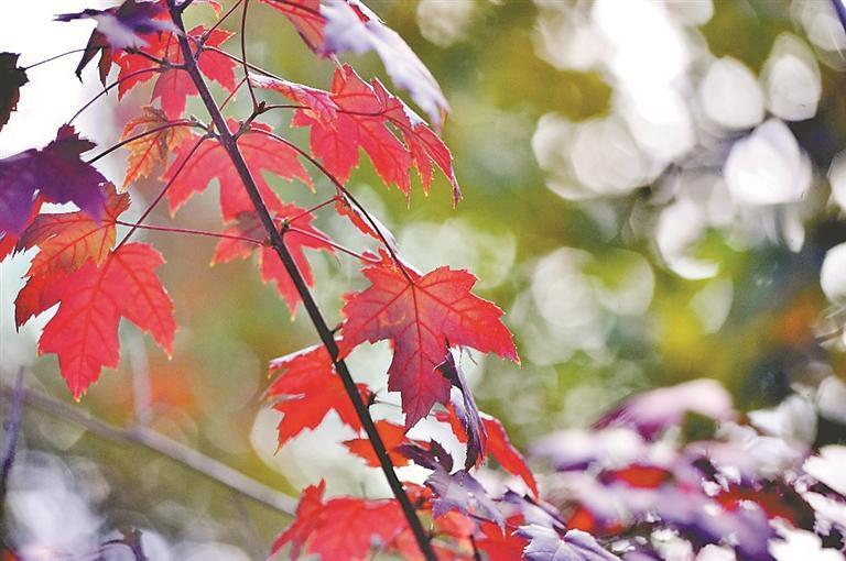 8日,寒露,二十四節(jié)氣中的第十七個節(jié)氣。在一些公園里,楓樹的葉子陸續(xù)變?yōu)榧t色,為秋季冰城再添了一道美景?;鸺t的楓葉吸引人們駐足觀賞拍照。